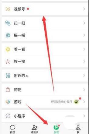 2、然后点击发现按钮,点击视频号。
