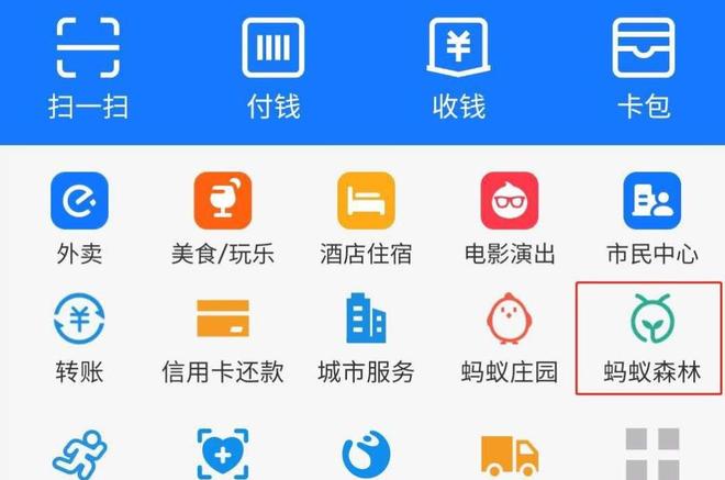 2、选择支付宝首页的“蚂蚁森林”应用;