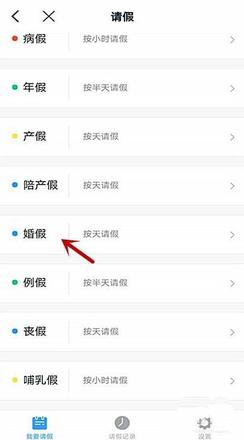 4、点击“婚假”,理由很简单呀,就是结婚。