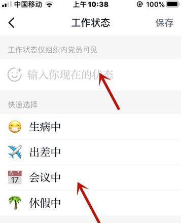 4、在工作状态的页面选择“工作状态的情况”(也可以自定义编辑工作状态的说明)