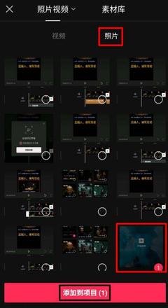 3、点击 照片,选中照片,点击 添加到项目,添加成功。