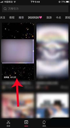 1、首先,打开手机桌面的“剪映”,进入后选择剪同款里的“2020520”进入。