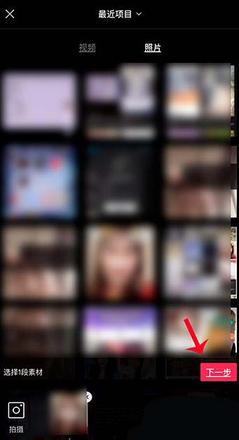 4、进入手机相册后,选择要表白人的照片,然后,点击“下一步”。