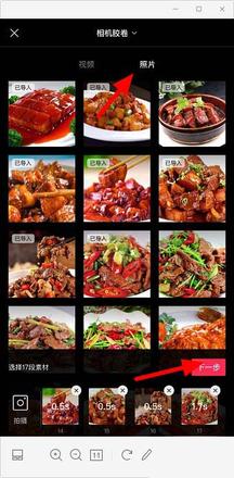 根据模板要求导入素材,可以是照片,也可以是视频,好了点击“下一步”。