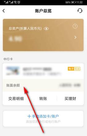 4、此时会弹出【账户总览】页面,接着再点击绑定的中行卡。