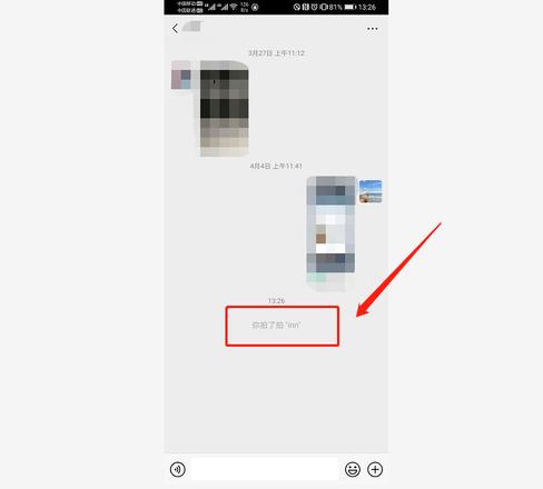 4、接着就可以在两人的聊天界面中看到一条状态信息:你拍了拍“对方的昵称”;