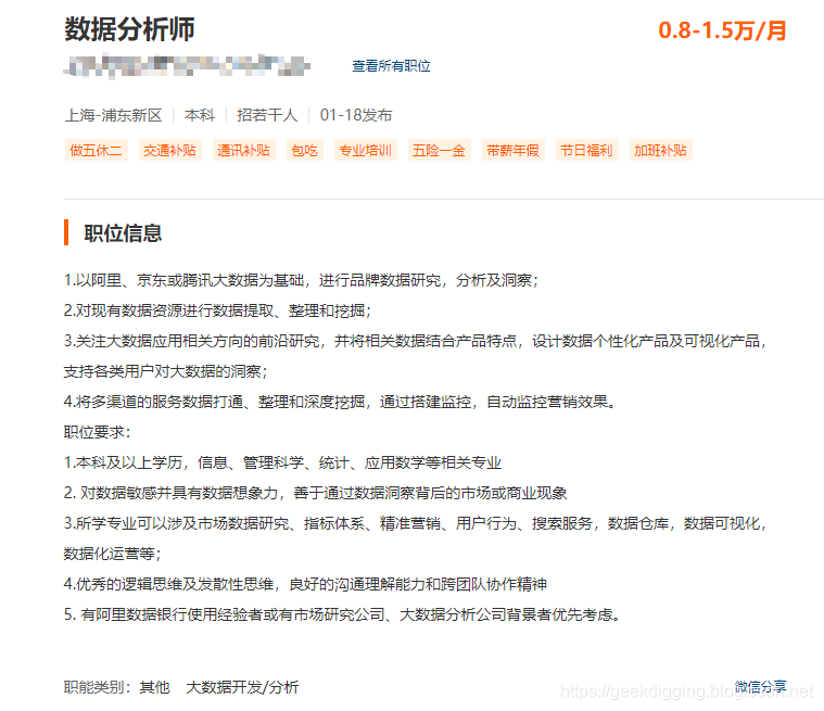 小编简单查了下 51Job 的上海地区的数据分析师的招聘信息,忽然发现一件事儿,感觉可能要砸很多培训机构的饭碗了,好像并没有大量的数据分析师的岗位要求掌握